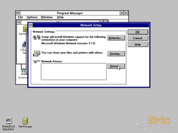 At this point Windows might ask you to enter an User Name, which you can use your name, a Workgroup, which you can leave as "WORKGROUP" and a Computer Name, which is the name your computer will be known as on the Network. After pressing OK on that, Windows might ask for the "Microsoft Windows for Workgroups 3.11 Disk 7 and 8" so it can finish installing some of the network drivers.