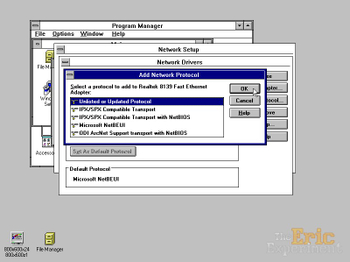 - Because Windows 3.11 doesn't support TCP/IP out of the box, we'll have to select "Unlisted or Updated Protocol".