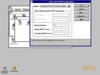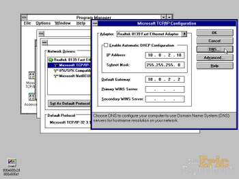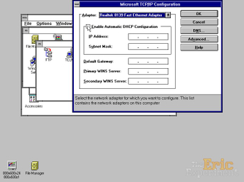 Windows 3.x resource pageNavigationSetting-up Ethernet TCP NetworkingIn this tutorial you can learn how to setup an ethernet connection on Windows 3.11 For Workgroups with the TCP/IP for internet browsing, file sharing and other networking needs. - First we need to download the TCP/IP-32 for Windows for Workgroups 3.11 and copy it to the computer where it'll be installed. There are many ways that can be done depending on if you're running it on bare metal or a virtual machine. I'll leave that one for you to figure out since it's out of the scope of this tutorial.