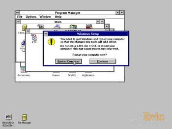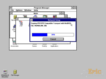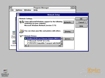 At this point Windows might ask you to enter an User Name, which you can use your name, a Workgroup, which you can leave as "WORKGROUP" and a Computer Name, which is the name your computer will be known as on the Network. After pressing OK on that, Windows might ask for the "Microsoft Windows for Workgroups 3.11 Disk 7 and 8" so it can finish installing some of the network drivers.